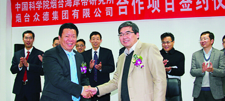 煙臺(tái)眾德集團(tuán)與中國科學(xué)院煙臺(tái)海岸帶研究所簽訂戰(zhàn)略合作協(xié)議,采用酶解超聲波技術(shù)萃取海藻液,研發(fā)海聚能系列海藻肥。